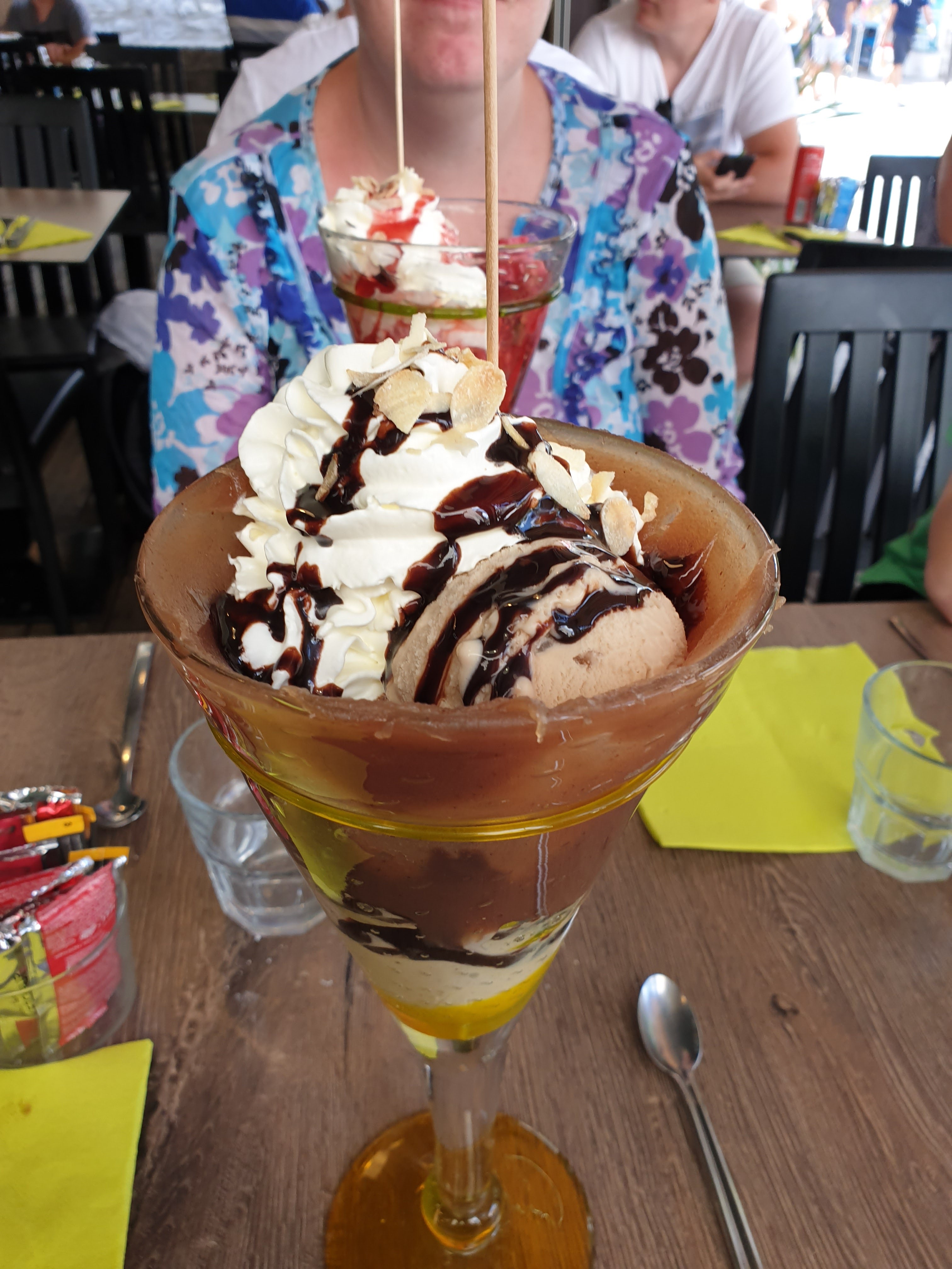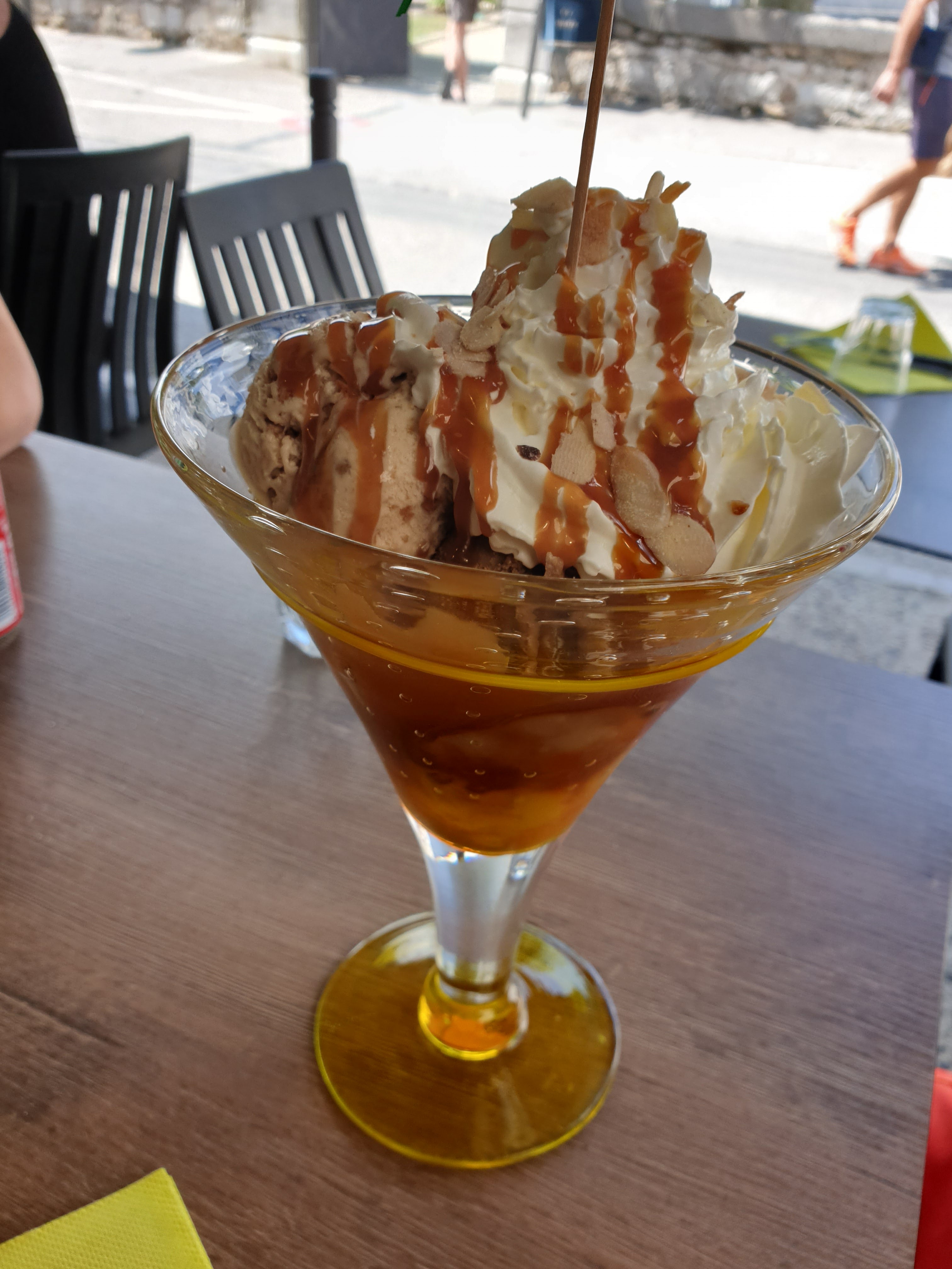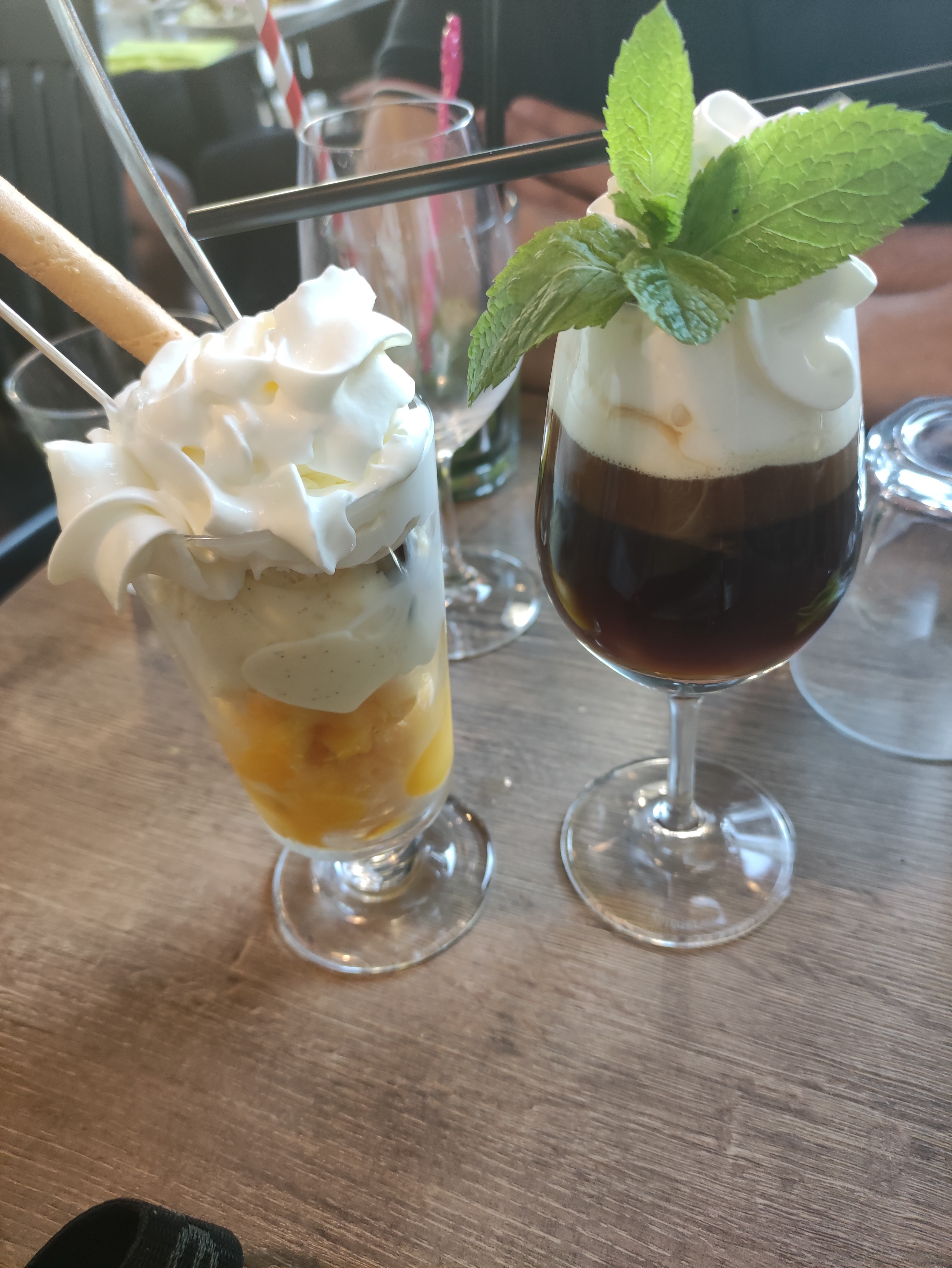 Énorme coupe de glace et café gourmand après une journée de route. On a apprécié. Service rapide et efficace avec le sourire malgré la situation actuelle. On recommande mais nous n'avons pas mangé et ne pouvons pas donner notre avis sur les repas et menus.