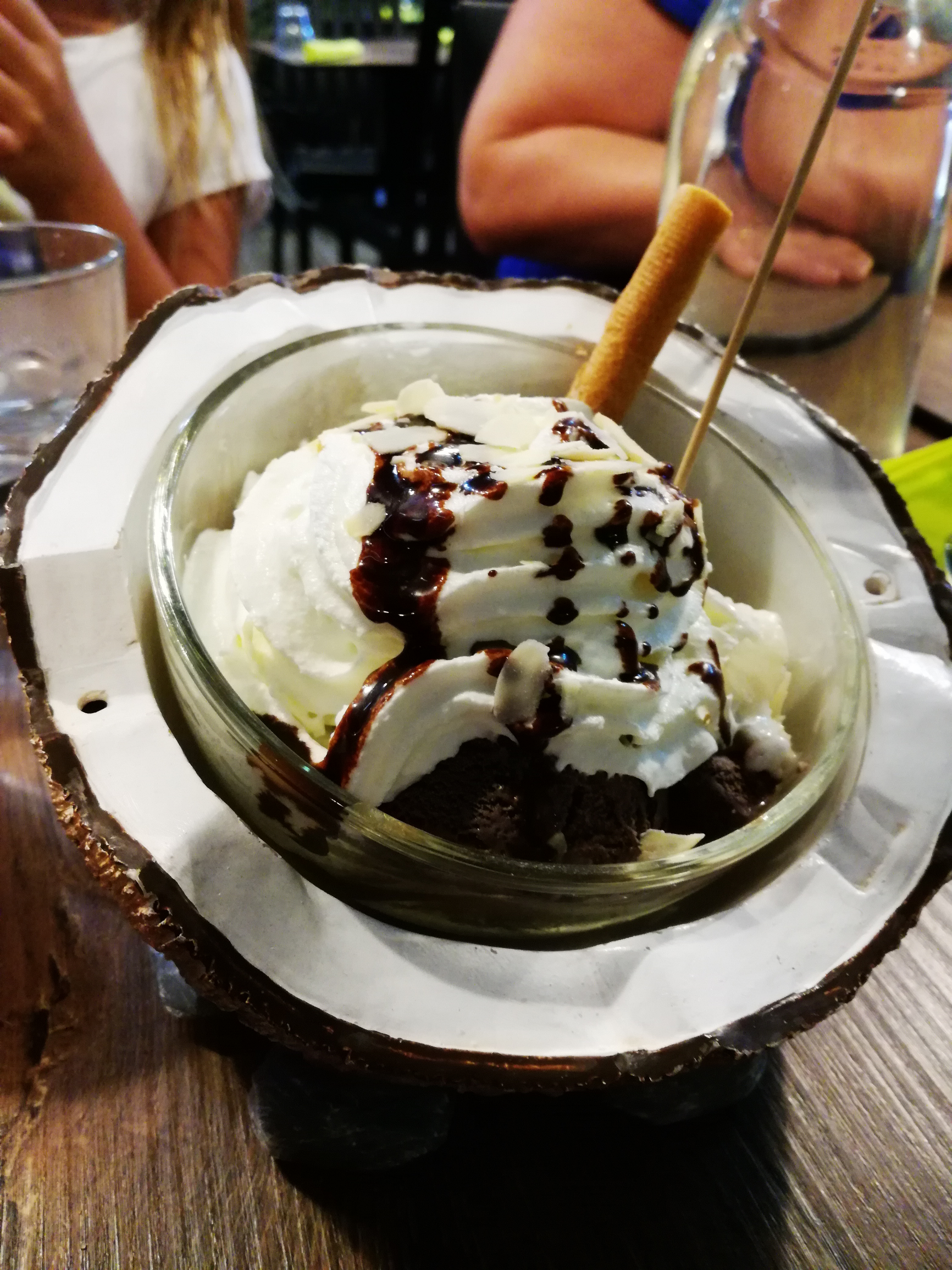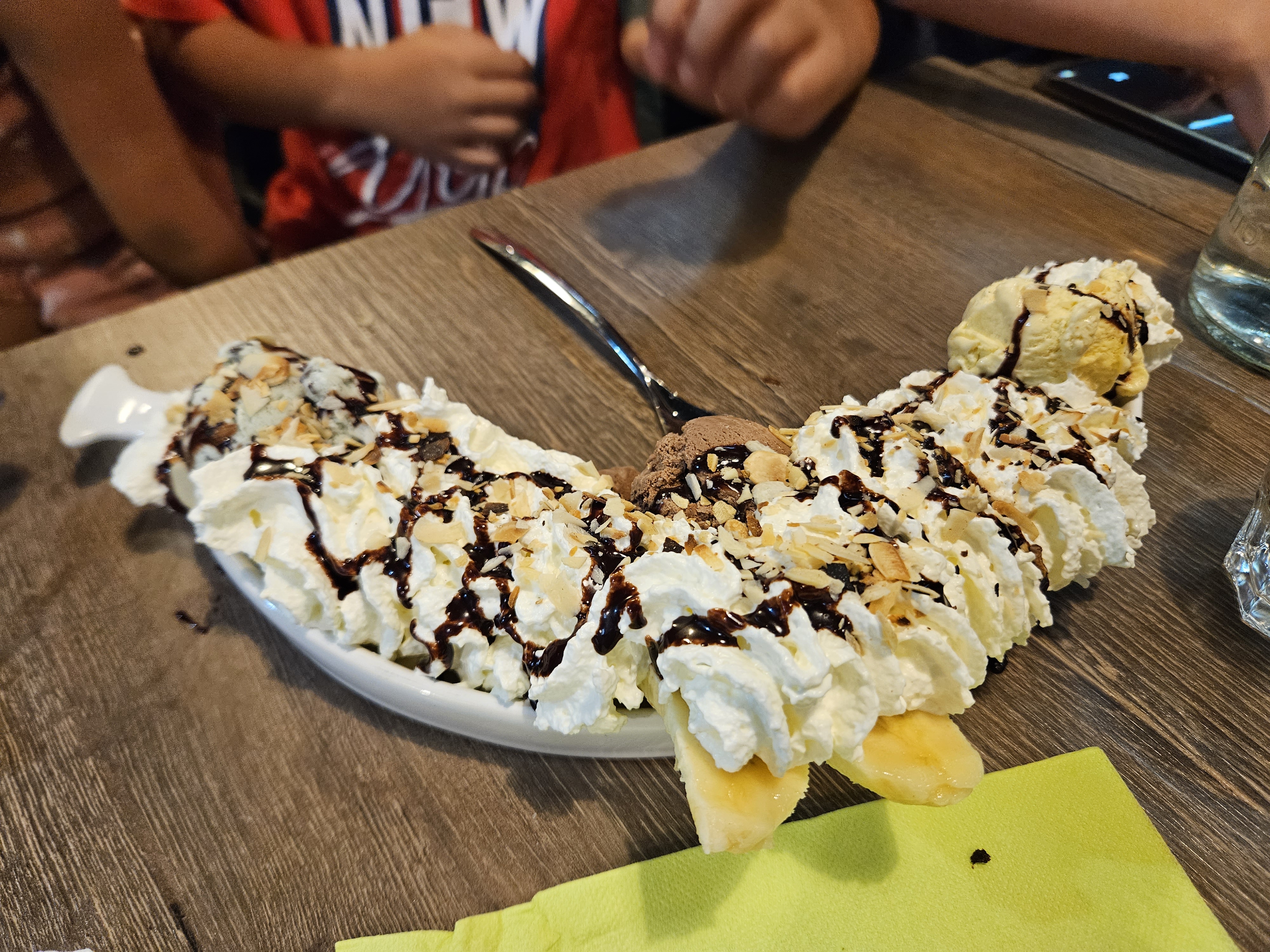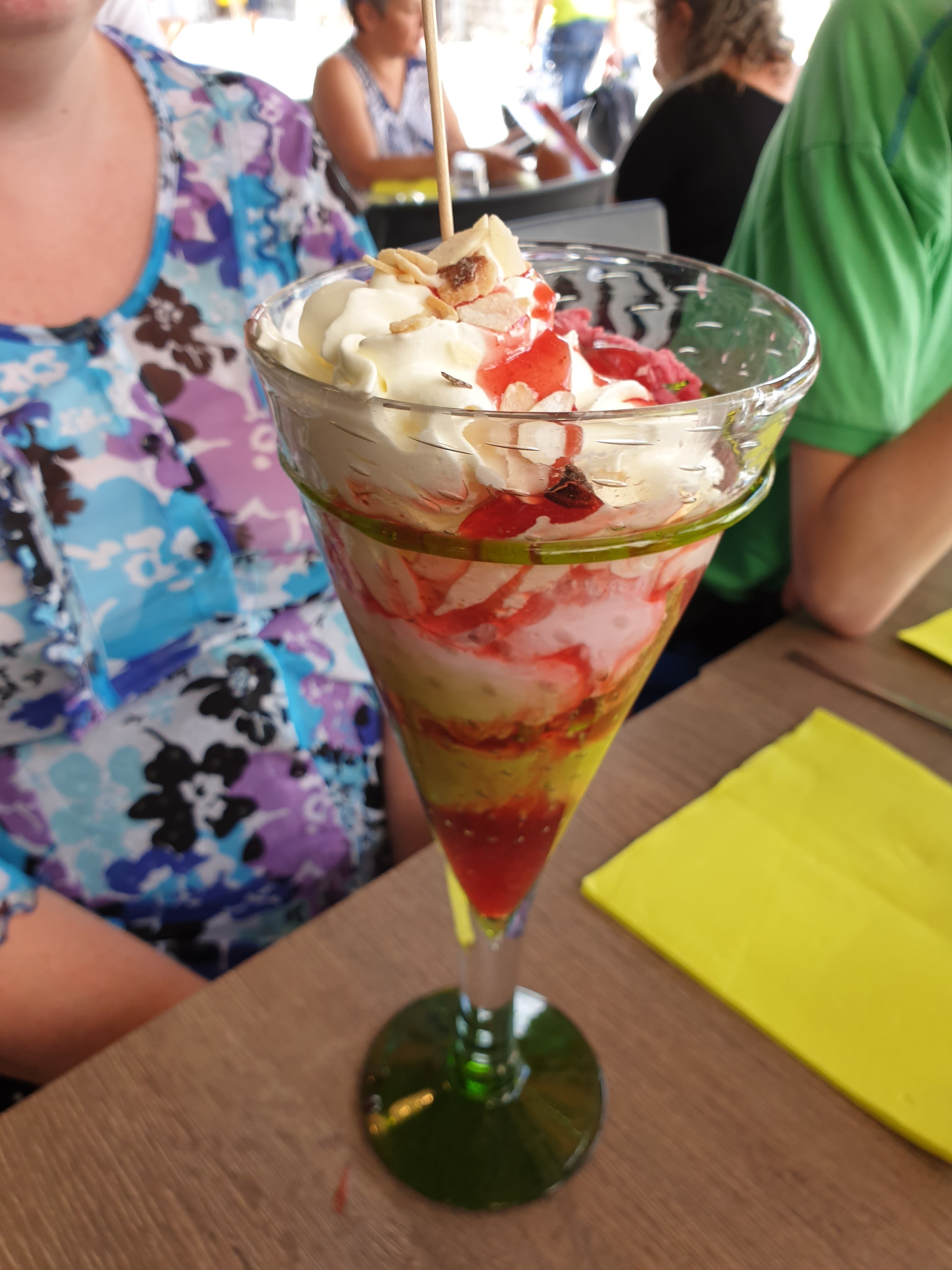 Énorme coupe de glace et café gourmand après une journée de route. On a apprécié. Service rapide et efficace avec le sourire malgré la situation actuelle. On recommande mais nous n'avons pas mangé et ne pouvons pas donner notre avis sur les repas et menus.