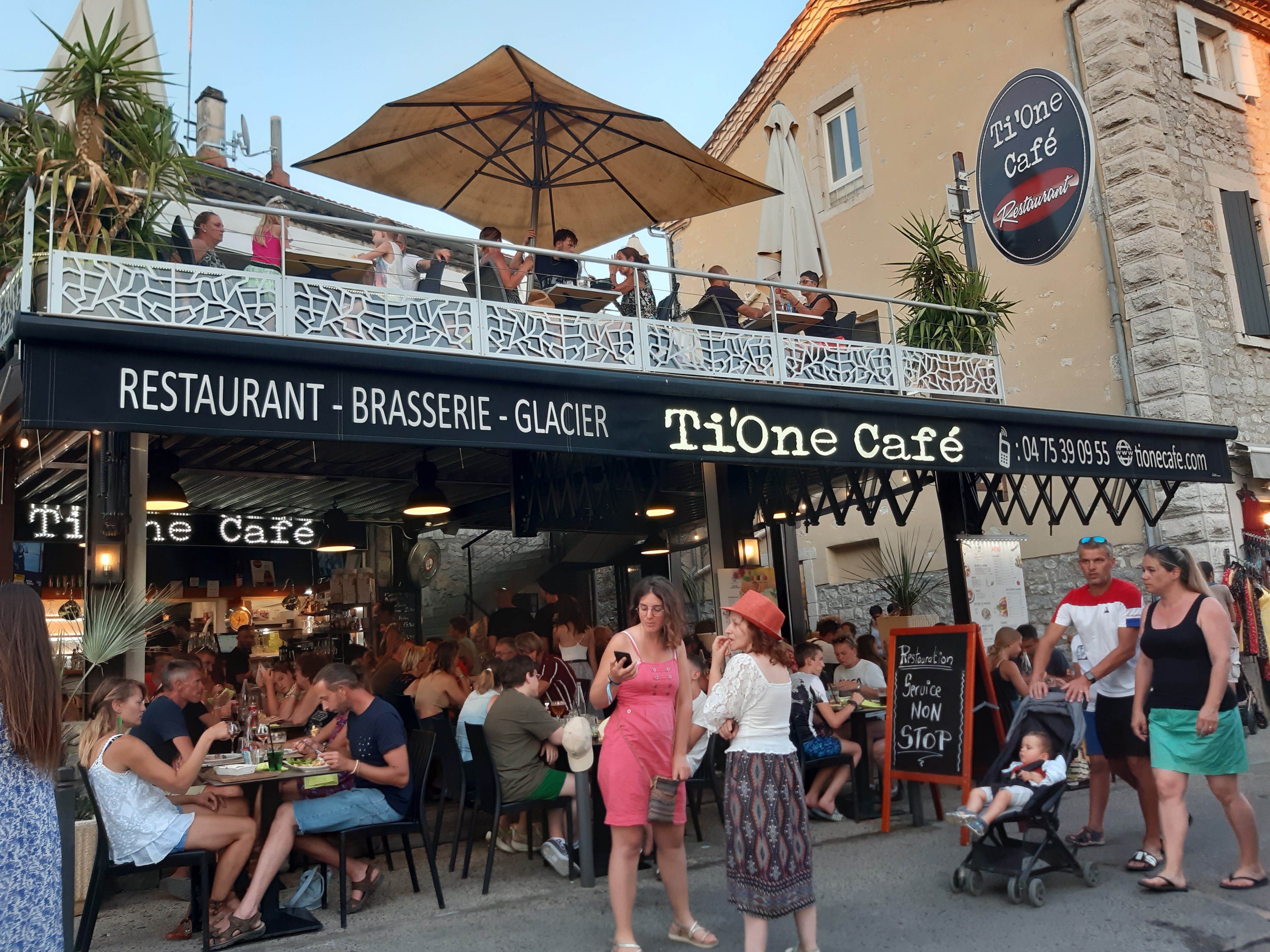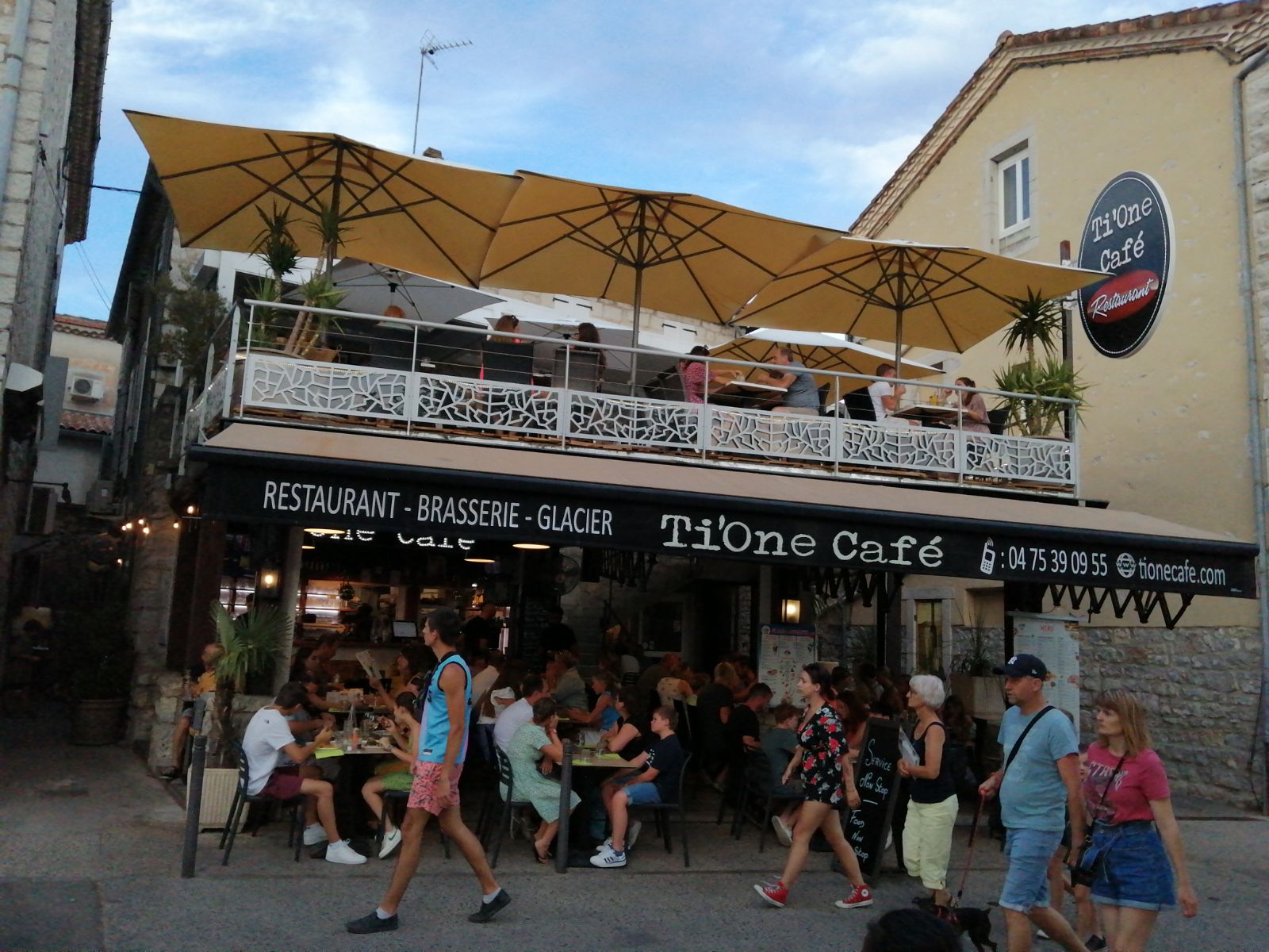 Mise à jour 2023 Nous sommes venus comme chaque année au marché local de Ruoms qui nous invite à faire un détour au Ti'One afin de nous remettre en forme pour le reste de la journée, personnel très convivial, malgré le monde dû à la saison, nous avons eu la possibilité de réserver. Le cocktail était nickel, et a parfaitement ouvert les festivités du repas, un superbe burger reblochon en assiette avec accompagnement et crudités, ça vaut le détour ! Fin mise a jour. C'est un plaisir retrouvé année après année, que ce soit les cocktails, les salades, les plats ou les desserts nous sommes toujours ravis (et repus) de venir dans cette enseigne. Le dynamisme des serveur et de l'équipe en cuisine est impeccable. Selon la température il y a même un système de brumisateur afin de rafraîchir la clientèle, sympa. La carte est suffisamment complète et permet ensuite de faire une promenade agréable dans la rue principale de Ruoms. Les prix sont correctes, c'est un bon rapport qualité prix. Étant Belge je suis un peu trop difficile sur la qualité des frites, à part ce detail, c'est très bien. C'est une adresse incontournable si vous visitez cette charmante ville.