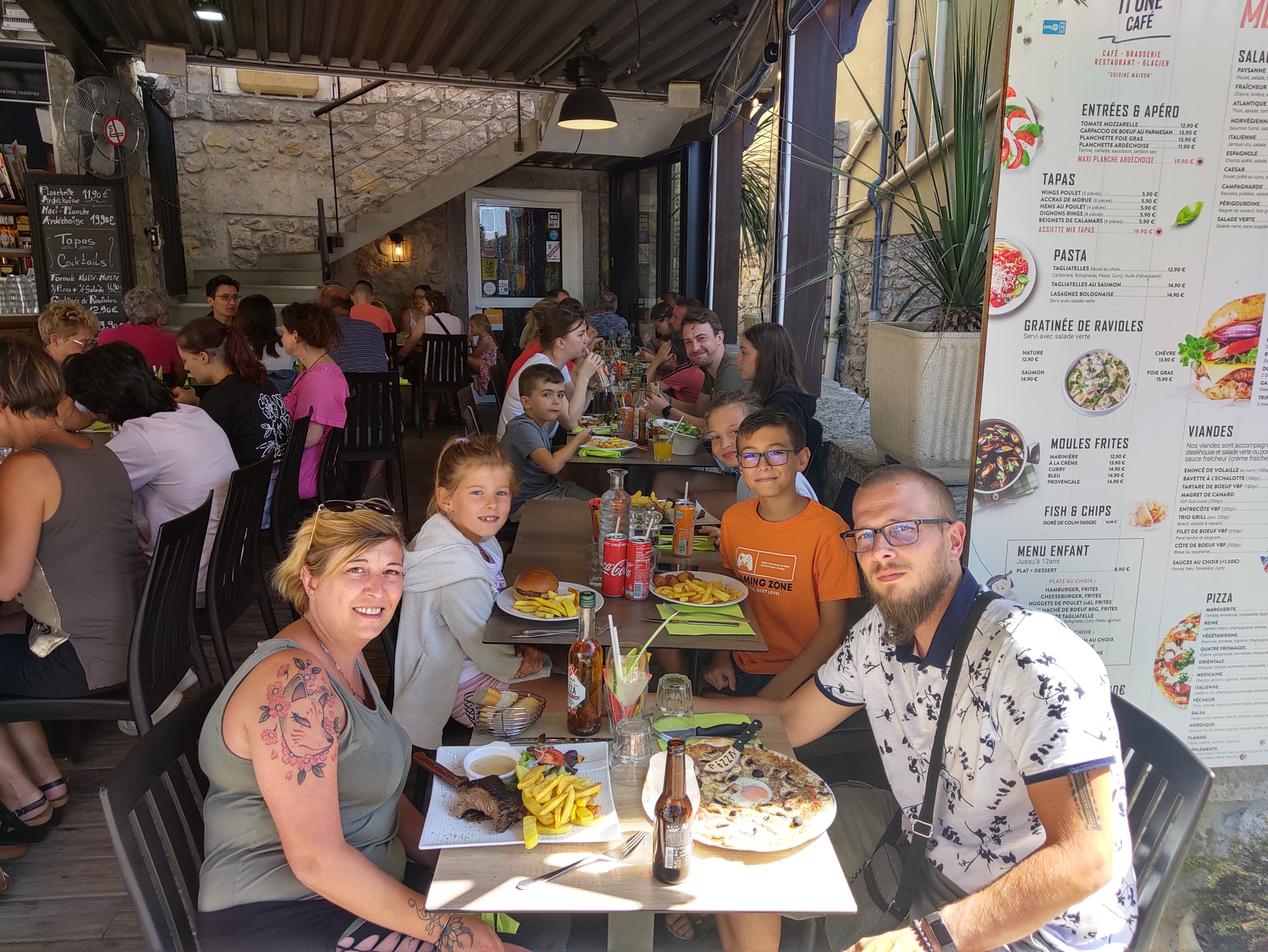 Nous avons passé une semaine à ruoms en août 2020 et nous avons mangé presque tous les jours dans ce restaurant. Ambiance, sympathie, qualité du service et des produits en quantité plus que raisonnable. Nous avons d'ailleurs félicité et remercié le patron lors de notre dernier repas . A réitérer si prochain passage en Ardèche