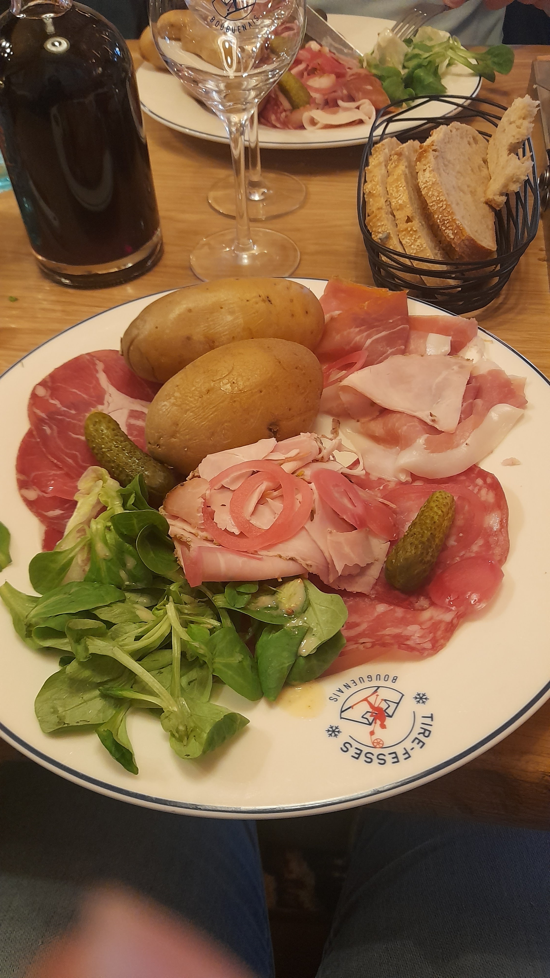 C’est comme si on était transporté dans un coin des Alpes 😃. Les plats sont hyper méga copieux et le service rapide et efficace . Et puis la Chartreuse chère à mon cœur est à la carte 😉. Je recommande aux amoureux du fromage , de la raclette et de la charcuterie 🤪.