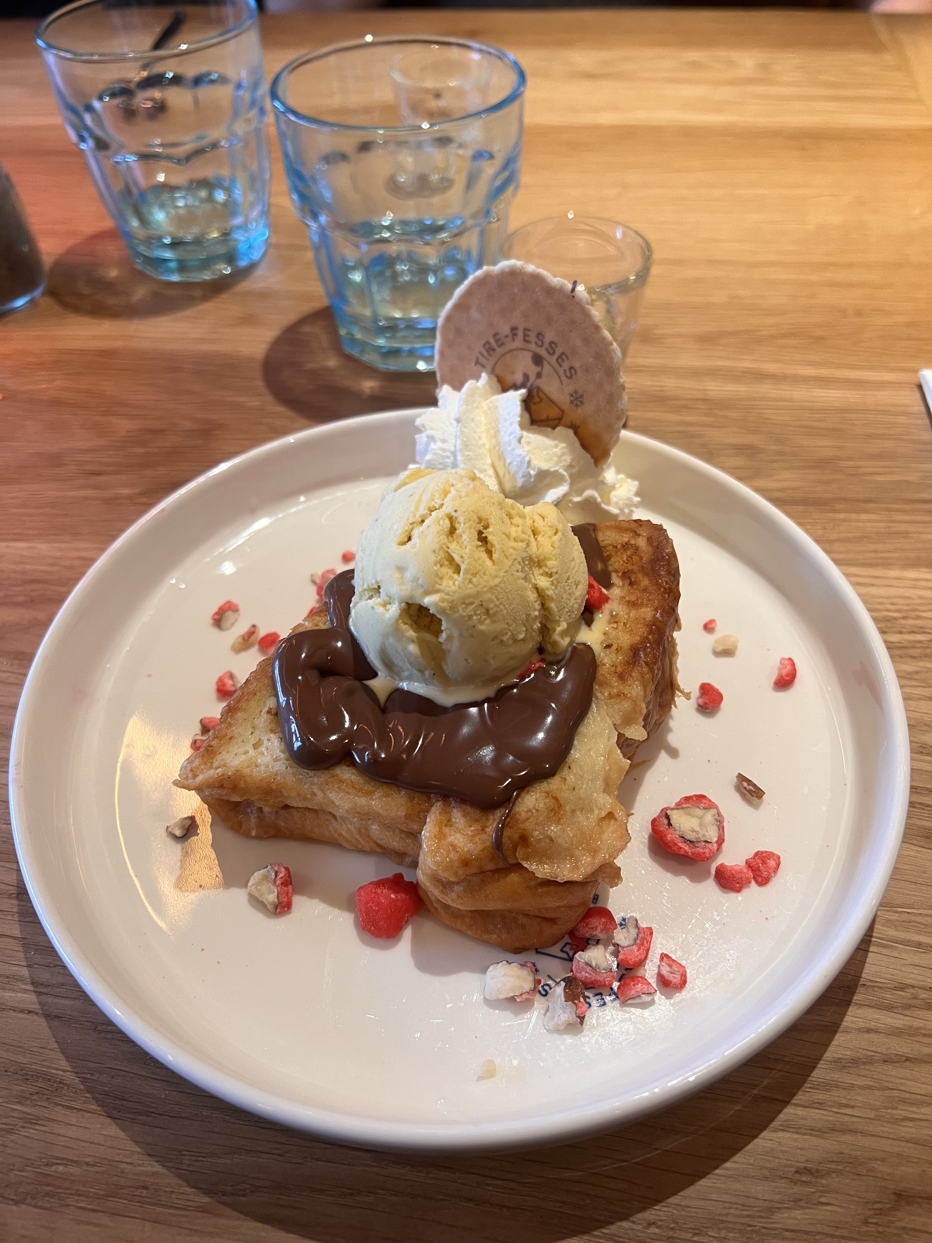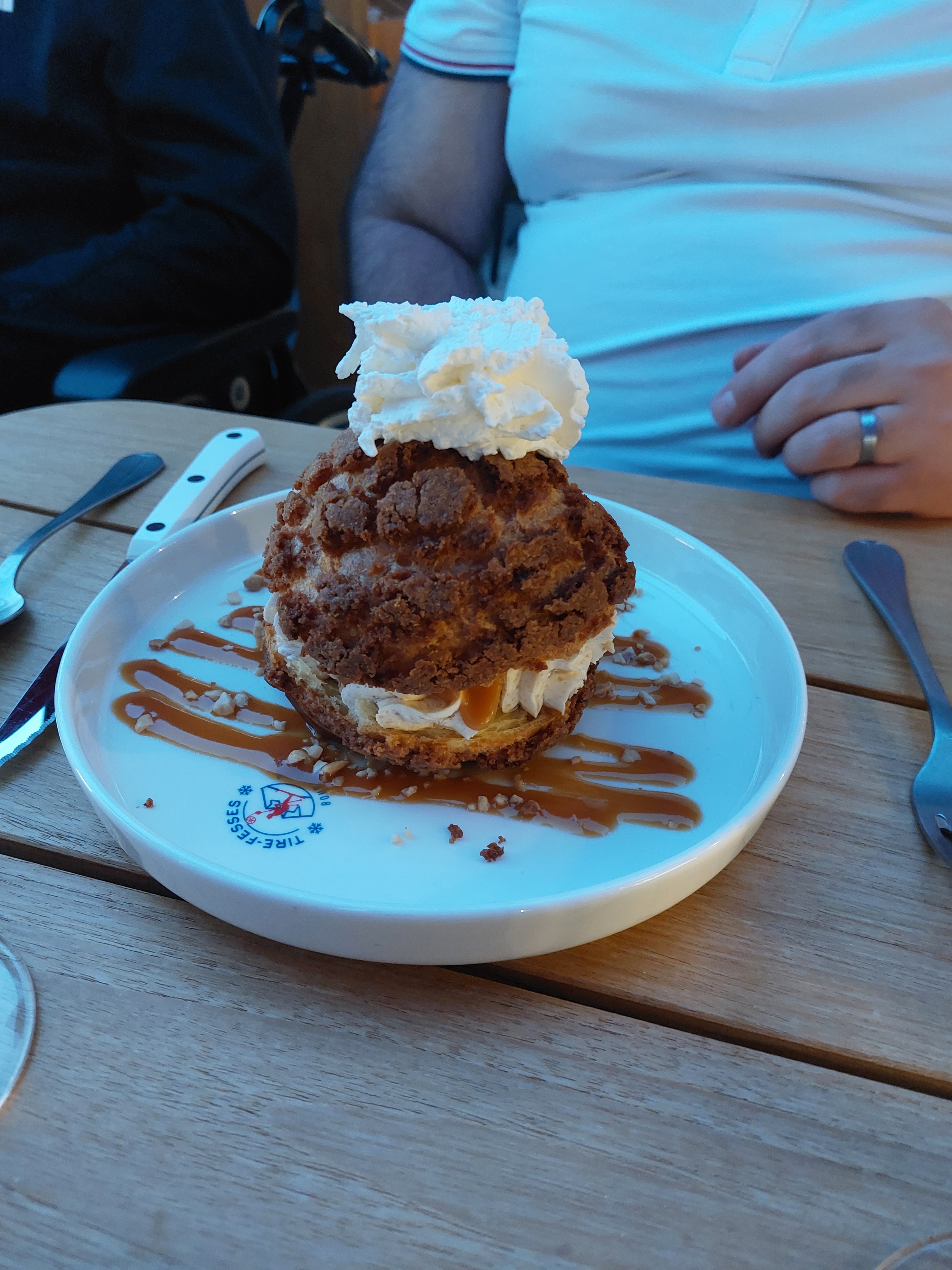 Belle découverte ce jour. Décoration au top, propre, service bon. A tester en famille ou entre gourmands ! Le fromage a raclette fumé n'a rien à voir avec ce que vous avez pu manger en grande surface. Chantilly maison ❤️