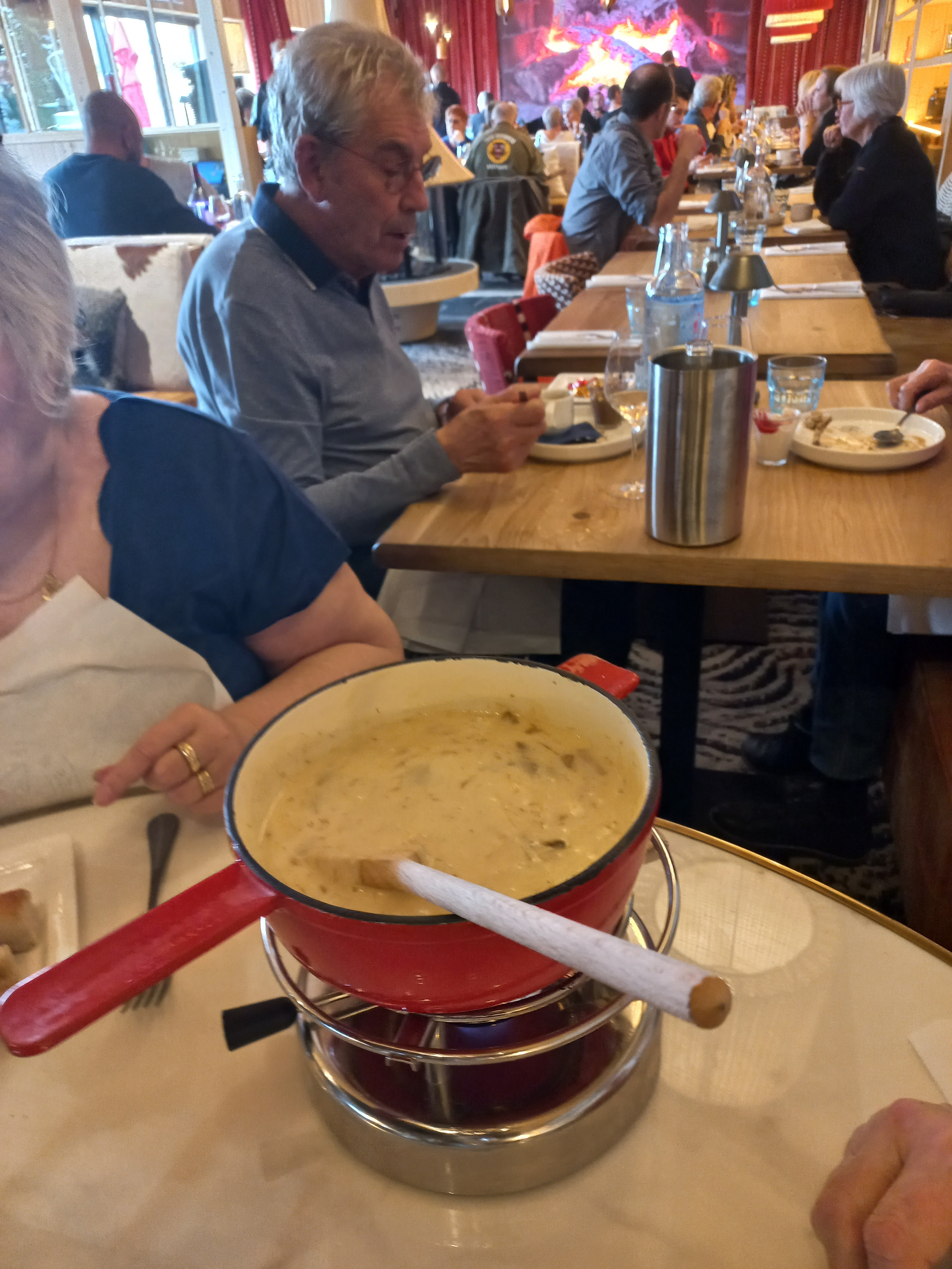 Nous avons passé une très bonne soirée : fondue aux cèpes très très bonne et fondue au chocolat parfaite. Le genepi digestif était le bienvenu. Bisous bon soir