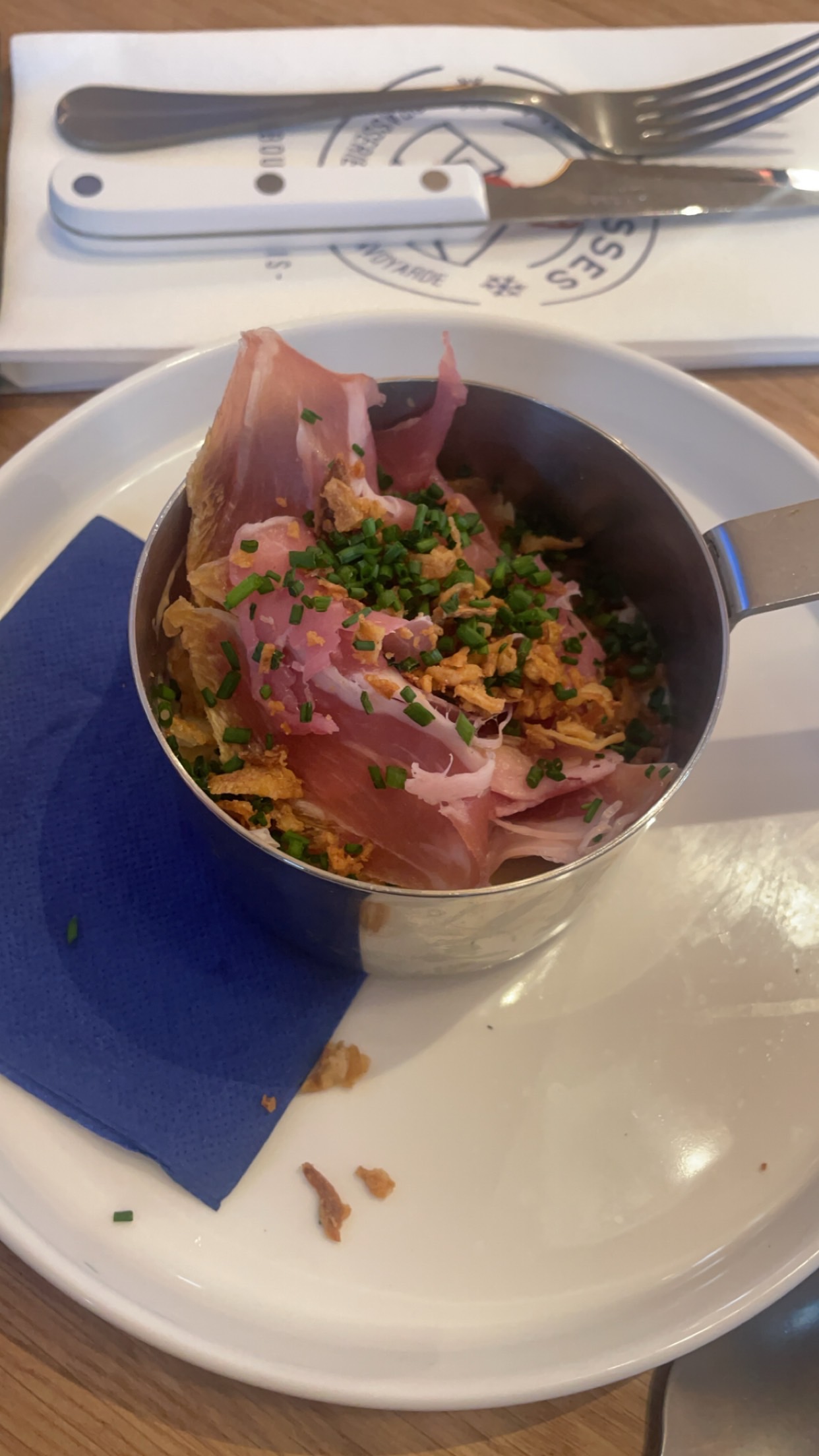 Venu pour découvrir cette ambiance savoyarde, et n'aimant pas trop le fromage, j'ai été conquis par la décoration, le lieu, en revanche, le plat c'était autre chose. On va mettre ça sur le dos de l'ouverture, mais ce que je peux reprocher : - Ribs de porc tiède voir froid et sec - Accompagnement écrasé de pommes de terre froid - la bière au Génépi, topissime J'ai demandé à faire réchauffer, ce qui a été fait (service au top là dessus), mais du coup c'était très chaud et le ribs avait perdu de sa saveur. Bilan très mitigé, revoir la qualité de la viande et les proportions, le but d'un restaurant, est d'y manger bien et bon. Ne pas tout mettre dans la décoration !